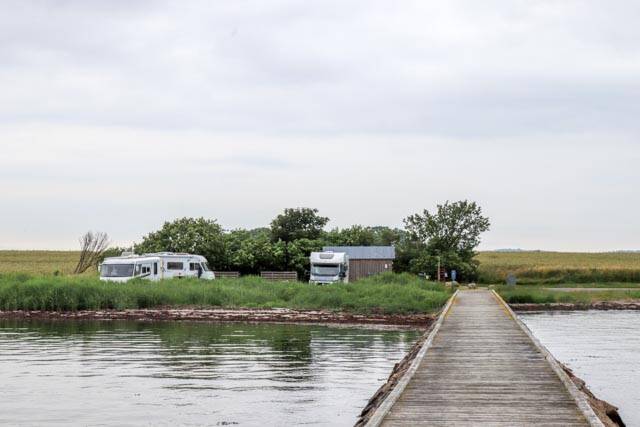 We zijn doorgereden naar het eiland Alrø aan de overkant van het Horsens fjord. We staan helemaal op het uiterste puntje op een parkeerplaats van het veerbootje met toiletten. We hebben hier ook nog 7 km gelopen.