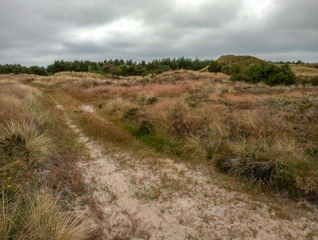 Donderdag 24 juni 2021. Het is hier bijna vlak. We besluiten op de fiets naar de oostpunt te fietsen. We komen eerst bij Højsandet, een zandrug , gemaakt in het begin van de 18e eeuw om de landerijen te beschermen tegen stuivend zand.