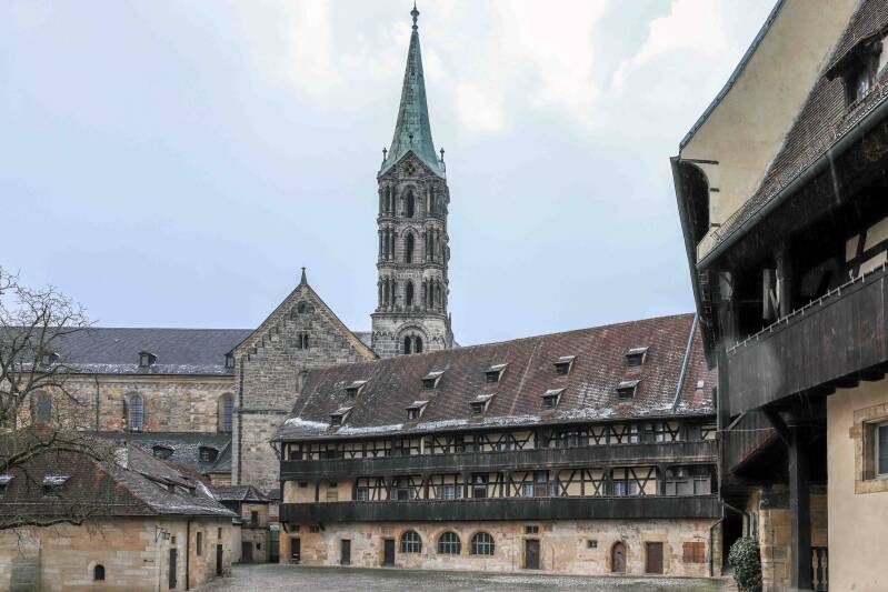 11 maart Vandaag zijn we naar Bamberg gereden. Hier is een camperplaats met alle voorzieningen aan een kanaal, €15,00. Coördinaten N 49º53'8" E 10º54'10". We zijn lopend naar het oude centrum gegaan, bijna 2 km maar goed te doen. Bij de VVV hebben we een plattegrond gehaald en hebben een groot gedeelte van de stad bekeken. De binnenstad van Bamberg staat op De UNESCO lijst. Het is een mooie stad. Om 2 uur hadden we nog een stadswandeling via de VVV geboekt. Dit was niet zo geweldig. Het is maar 2 graden met een harde wind en de dame van de rondleiding stond steeds heel lang stil om van alles te vertellen. Niet goed voor onze lichaamstemperatuur. We zijn na bijna 2 uren weggegaan.