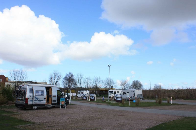 Toen naar Dornumersiel. Hier is een zandstrandje, camping en een haven.