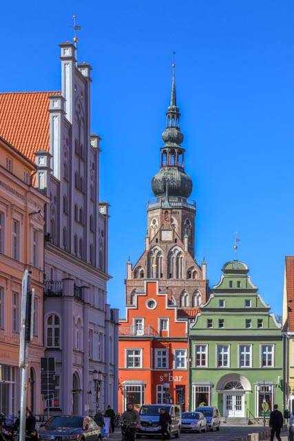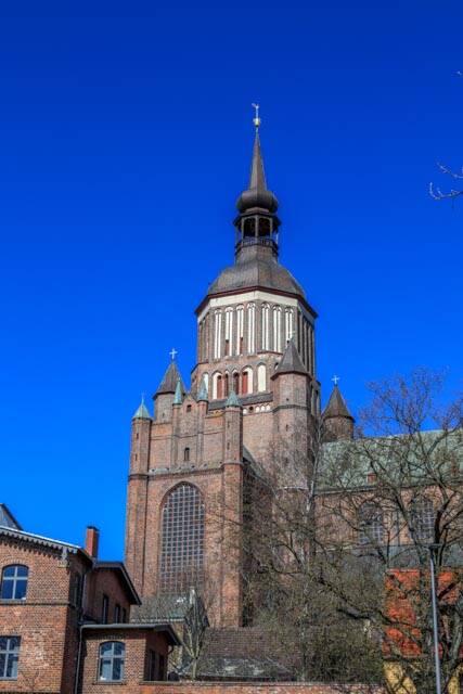 We zijn nu in Rostock, camperplaats aan het water op een mix-parking zonder voorzieningen kosten volgens de app €12,- maar we hebben €6, betaald voor 24 uur, coördinaten N 54°5'32" E 12°7'54" We zijn eerst naar de VVV geweest voor een stadswandeling en hebben er een stukje van gelopen. Er staan hier ook weer gebouwen met baksteen gotiek en nieuwe gebouwen in de zelfde steil.