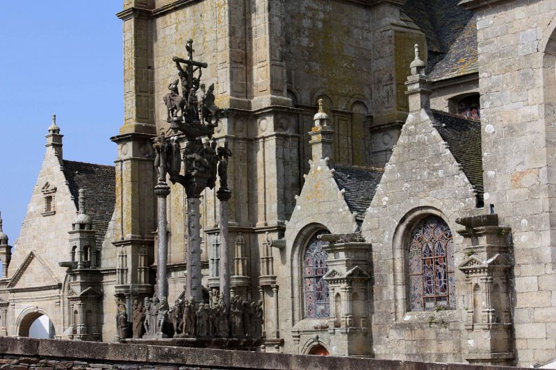 Hierna zijn we naar St. Tregonnec gereden, hier is een kerk met een ommuurd kerkterrein. De toegang is een triomfale poort en binnen dit terrein staat een kruisbeeld, een dodenkapel, een kerk en een kerkhof. Erg mooi allemaal. Hierna naar Guimiliau en Lampaul-Guimiliau waar ook zulke ommuurde kerkterreinen zijn. Allemaal verschillend.