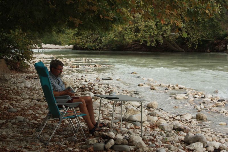 Woensdag 18 september. Gewandeld, 3 uren heen en 3 uren terug, het bergland van de Soulioten in. Er zijn nog een stuk of 10 oorspronkelijke dorpjes. Mooie uitzichten, en een mooi rivierdal van de Achéron. Op de zelfde plaats geslapen als gister.