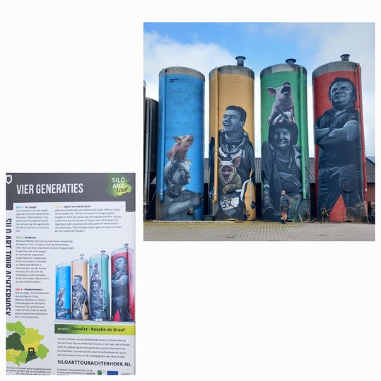 Zaterdag 18 mei 2024. We gaan weer verder met de Silo-art route. Er staat er één vlak bij de Steengroeve van Winterswijk. Er staat een bordje bij met uitleg.