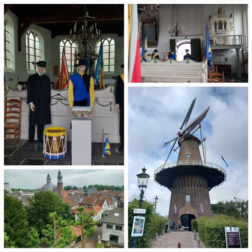 Zaterdag 25 mei 2024. Vandaag is het weer droog. We gaan vandaag op de Fiets naar Ravestein. Dit is ook een vestingstadje met veel leuke hoekjes. Bij de VVV halen we weer een stadswandeling. We komen bij een kerkje waar een tentoonstelling is van het Schuttersgilde. We krijgen van een mevrouw een uitgebreide uitleg over alle gebruiken. Erg interessant. We beklimmen de molen tot bij de wieken.