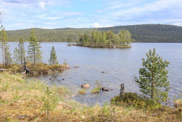 We mogen niet meer op de parkeerplaats van het museum overnachten. 100 meter verder aan het meer zien we een mooi plekje, hier mag het wel. Coördinaten N 68.91011 E27.01354 gratis, geen voorzieningen.