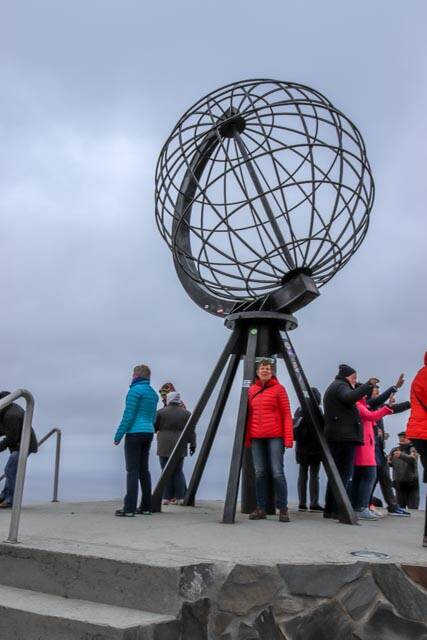 Hierna zijn we verder gereden tot op de Noordkaap. We staan op een grote parkeerplaats met nog 105 campers. Het is hier erg koud. 3 graden en veel harde wind. De zon zit achter een dik wolkendek. Jammer.