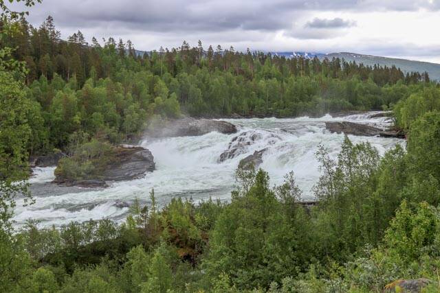 Woensdag 19 juni 2019. We zijn naar de Målselv waterval geweest, een erg mooie waterval met ernaast een zalmtrap van 120 meter. Er zwom een zalm voor een glazen wand op de trap. Hij is erg groot, meer dan 80 cm.