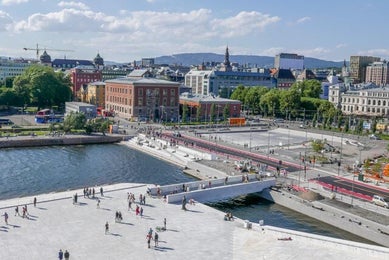 Hierna zijn we naar Oslo gereden naar de camperplaats bij de haven. Nkr 300 per nacht, alle voorzieningen, douche Nkr 10. Coördinaten N 59.91989 E10.6752 We zijn naar het oude centrum gelopen en hebben daar een stadswandeling gedaan. Het is een mooie levendige stad. We hebben in het stadhuis een rondleiding in het Engels gehad, deze was gratis. Er is een wat fantasieloos paleis, een dom die dicht was, regeringsgebouwen, een tot winkels en restaurants omgebouwd stationsgebouw, een operagebouw waar je op het dak kon en een vesting.
