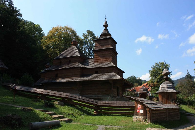 We wilden met de kabelbaan naar de hoogste top van de Tatra (Lomnitzern Spitze, 2632m) maar de wolken hingen in het dal. Er is dan geen uitzicht, dus is het niet de moeite waard. We zijn daarom maar verder gegaan. Naar het noorden, richting Bardejov, de weg gaat vlak langs de Poolse grens. De drank is in Slowakije zo te zien goedkoper dan in Polen, er zijn veel winkeltjes waar ze drank verkopen. Eerst naar Lukov, hier staat een houten kerkje. Hierna zijn we naar Bardejovska Kupele, een kuuroord, geweest. Het is hier allemaal vergane glorie, de meeste hotels zijn leeg zo te zien. Er is hier ook een openluchtmuseum met huizen en kerken uit de streek. Dit is wel de moeite waard. Er zijn maar weinig bezoekers.