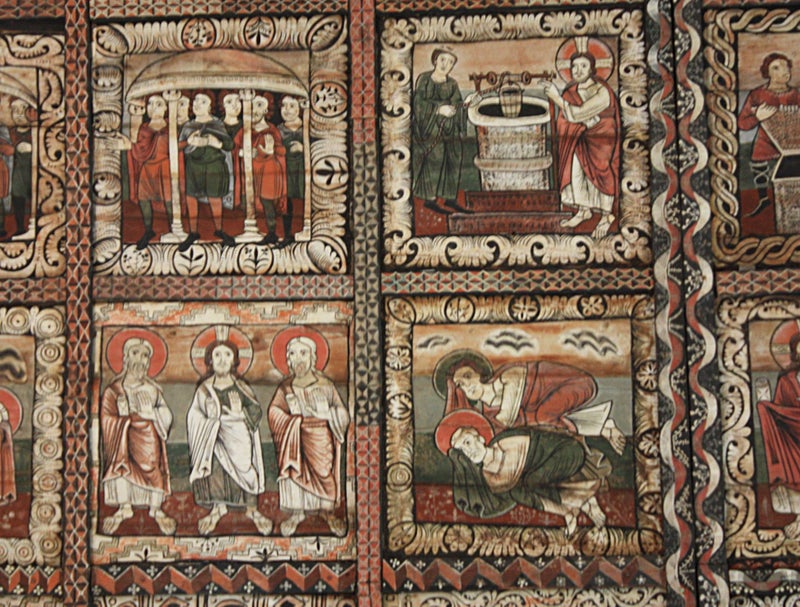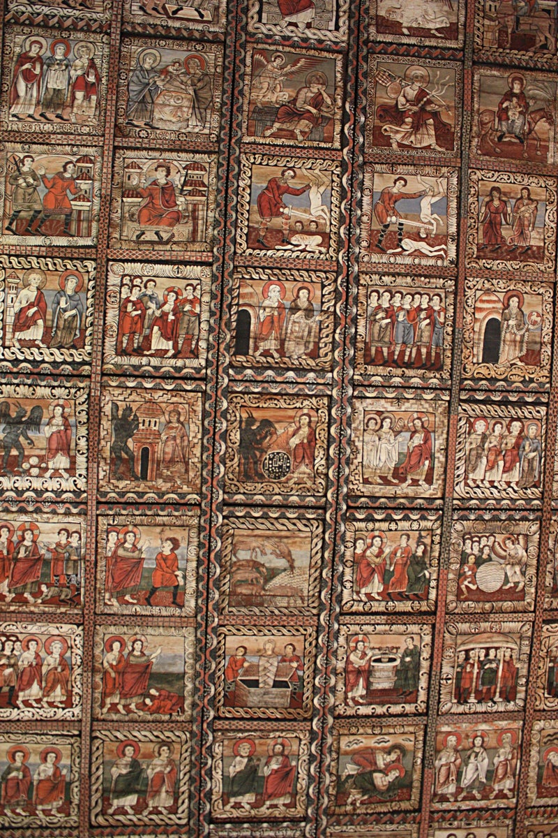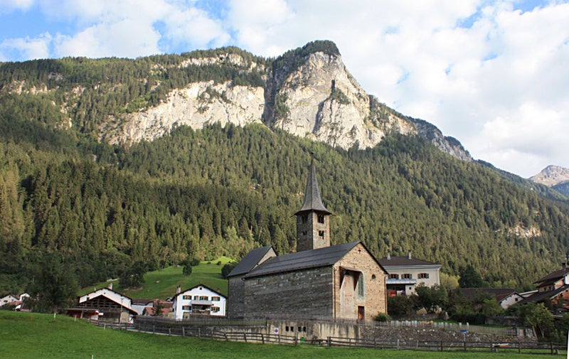 We zijn doorgereden naar Zillis, naar de kerk St. Martin. Hier staat een kerkje waarvan het platte plafond beschilderd is met 153 vierkanten met taferelen. Nadat we toegangskaarten hadden gekocht moesten we eerst naar het gemeentehuis om een film te zien over de schilderingen. In de middeleeuwen werden alle kerken van aanzien verfraaid met beelden, ornamenten en decoratie's. Hier was niet genoeg geld om de kerk te verfraaien en het plafond was vlak. Hierom hebben verschillende schilders vierkanten gemaakt welke later tegen het plafond zijn geplaatst. Er lagen spiegels in de kerk waarmee het gemakkelijk was naar het plafond te kijken. Leuk om te zien.