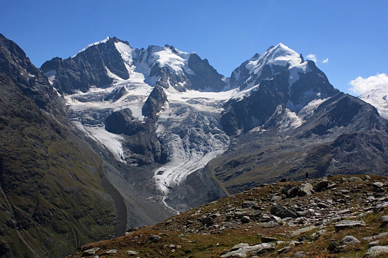 Donderdag 8 september. We zijn op de fiets naar de kabinelift gegaan en hierna met de lift naar het middenstation van de berg Corvatsch. Silvaplana ligt op 1815 meter en het middenstation op 2702 meter. Vanaf hier zijn we gaan lopen naar de hut Fuorcla Surlej op 2755 meter. Dit was een gemakkelijk stukje. Bij de hut hadden we een prachtig uitzicht op de gletsjers. We zijn hier een tijdje geweest en zijn toen verder gaan lopen richting de gletsjers. Na een uurtje zijn we weer terug gegaan en zijn we aan de afdeling van de berg begonnen. Hier hebben we een aantal uren over gedaan. Het eerste stuk was erg vlak. Het tweede stuk ging steil naar beneden. Vanaf deze kant hadden we een prachtig uitzicht op meren.