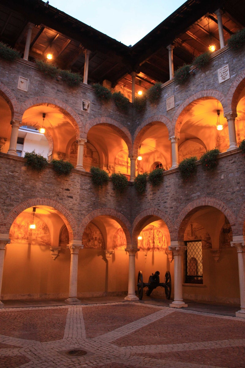 We zijn 's avonds na het eten naar het oude centrum gelopen, 1 km. Er was een eet festival, je kon bij tentjes allerlei soorten eten kopen uit allemaal verschillende landen. Er zijn 3 kastelen in en bij de stad met nog een heel lang stuk muur. Vroeger liep de muur van de ene kant van het dal naar de andere. Het hele dal werd zo afgesloten. Er is een oud gemeentehuis, kerken en mooie pleintjes.