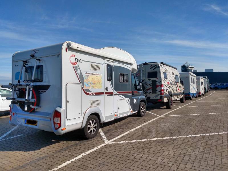 We moesten de camper 20 september naar de haven van Zeebrugge brengen, vanaf hier gaat hij op het schip, de "Wisdom-Ace" naar Zarate, vlak bij Buenos Aires.